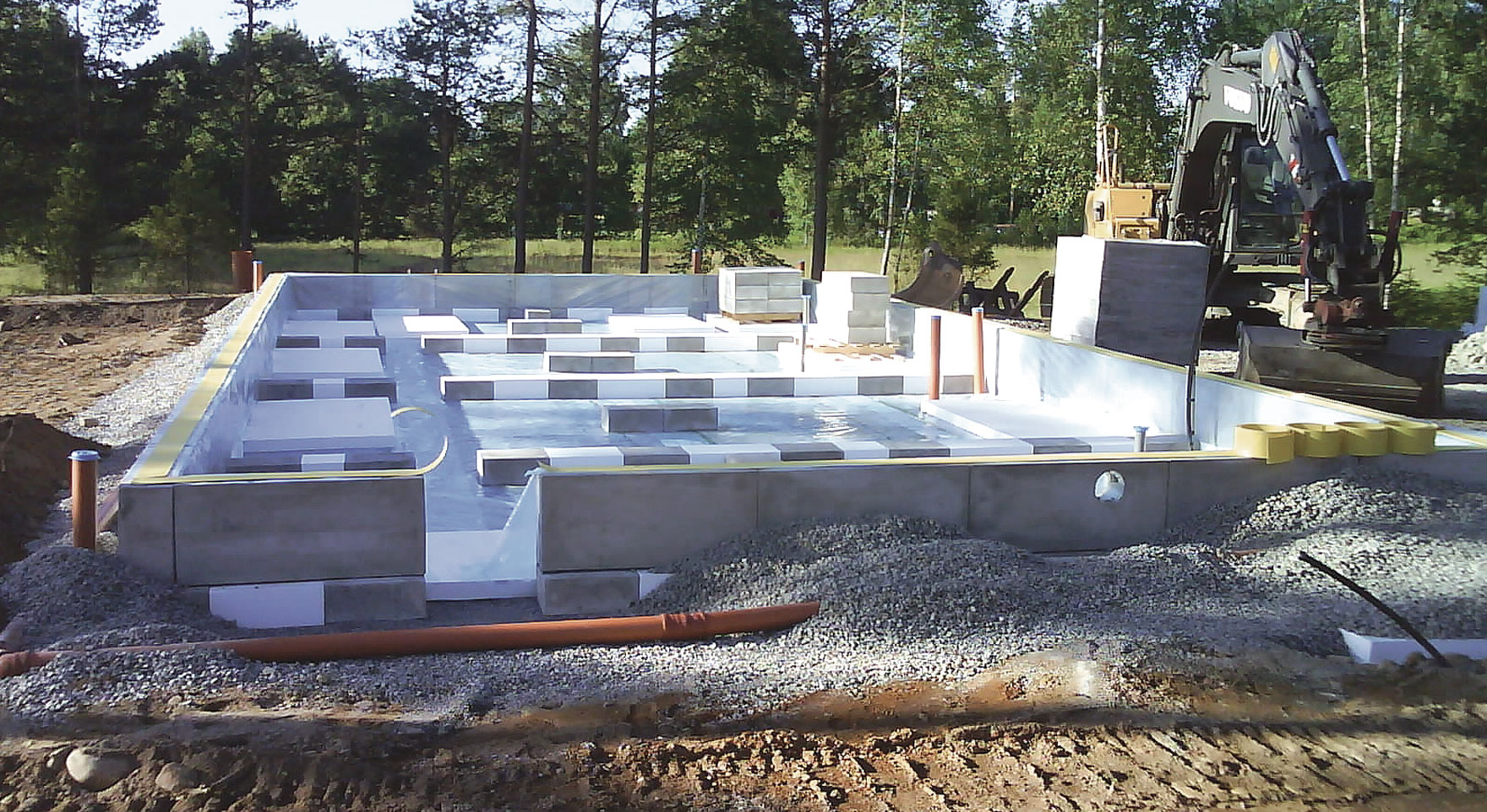 Vissa husfabriker levererar hus med färdigt bjälklag och i dessa fall behövs en krypgrund istället för en platta på mark. Vi har ett krypgrundssystem med lätta och väldigt välisolerade balkar som monteras för hand utan kranbil. Betongmängden som går åt vid byggnationen blandas på plats vilket gör att denna typ av grund passar bra där det är svårt att komma fram med betongbil.