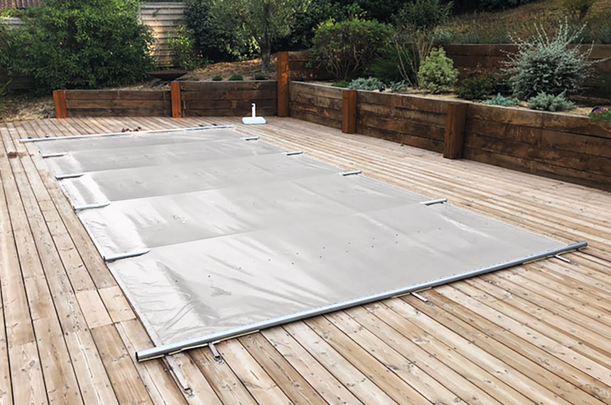 Bar cover är det vanligaste poolskyddet eftersom det är förhållandevis billigt, enkelt att installera och lätt att rulla av och på manuellt med hjälp av vev. Bar covers består av aluminiumrör som ligger tvärs över poolen och förstärkt PVC-duk. Capella är den enklaste varianten som vi erbjuder som standard. Walu Pool har något kraftigare duk och utbytbara PVC-paneler. Alla bar covers är säkerhetsklassade enligt franska säkerhetsstandarden NF P 90-308. Poolskyddet installeras i trädäck eller liknande efter att poolen är klar.