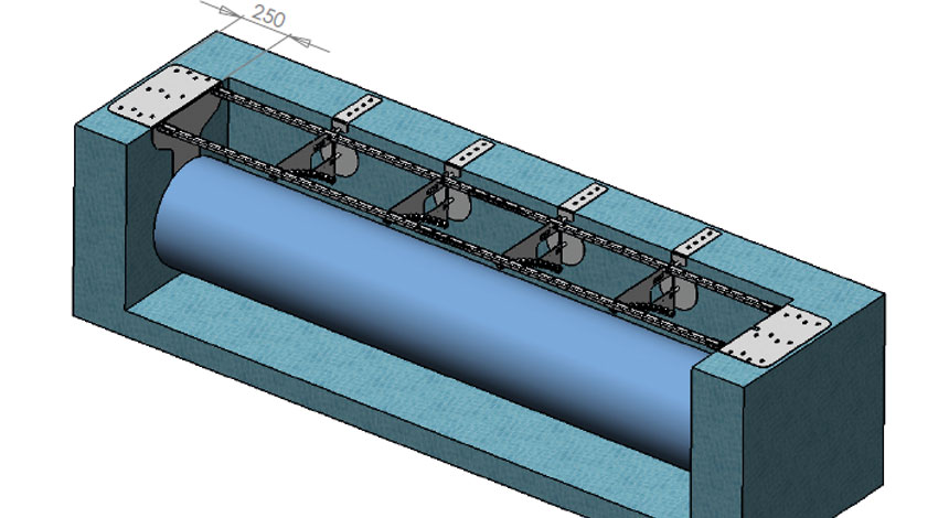 Vi offererar vanligtvis en konstruktion som är anpassad för poolblock i cellplast. Bryggans förankringar är förlängda och stöden mot väggen större för att minska belastningen. Förankringar görs i krönbalken i ovankant pool så man behöver inte göra några genomföringar i vägg.